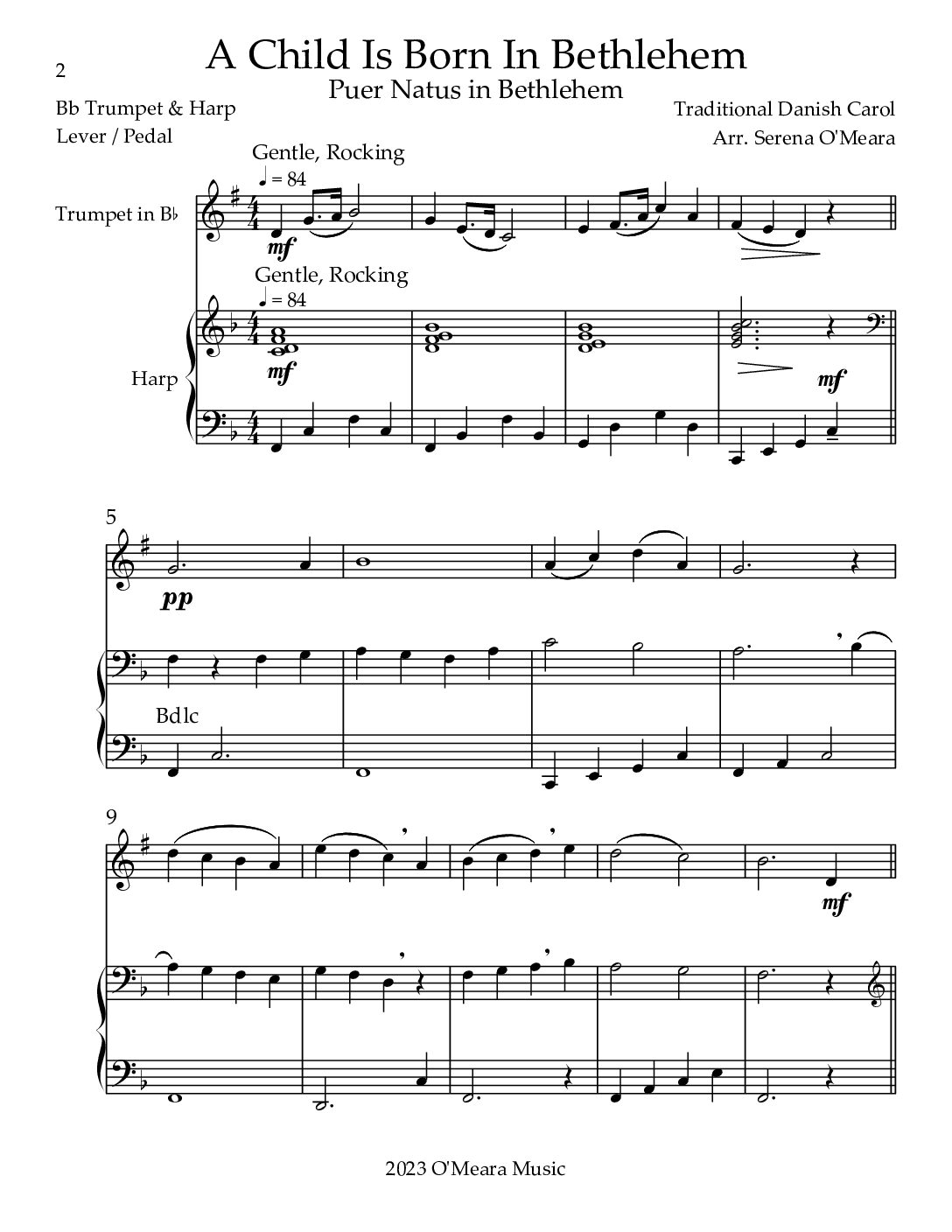 A Child Is Born In Bethlehem, Duet for Bb Trumpet & Harp