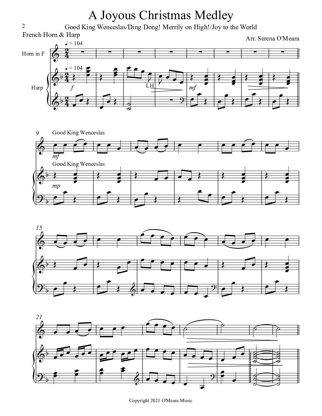 Your respect of the copyright laws will help support the musicians and arrangers who created this music, and will encourage more harp music to be produced in the future. Please do not make multiple copies to pass on to others. You can help keep downloadable harp music viable and available by encouraging your students, friends, and relatives to purchase their own copies. Thank you for your assistance in this endeavor.