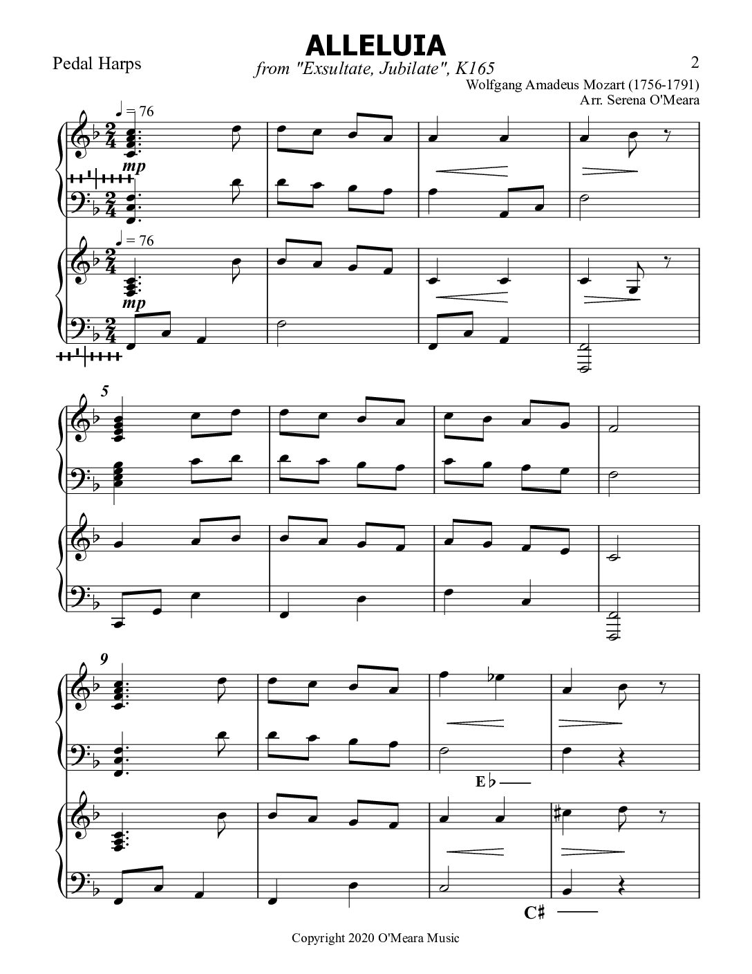 Alleluia from “Exsultate Jublilate”, Duet for Pedal Harps