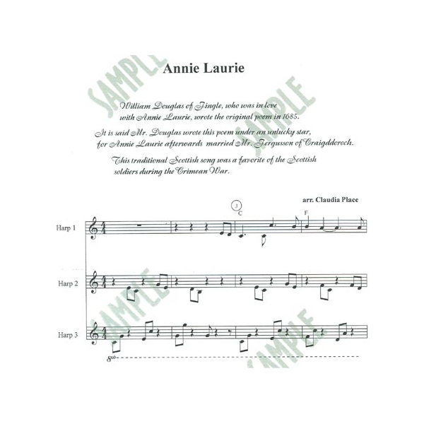 Your respect of the copyright laws will help support the musicians and arrangers who created this music, and will encourage more harp music to be produced in the future. Please do not make multiple copies to pass on to others. You can help keep downloadable harp music viable and available by encouraging your students, friends, and relatives to purchase their own copies. Thank you for your assistance in this endeavor.