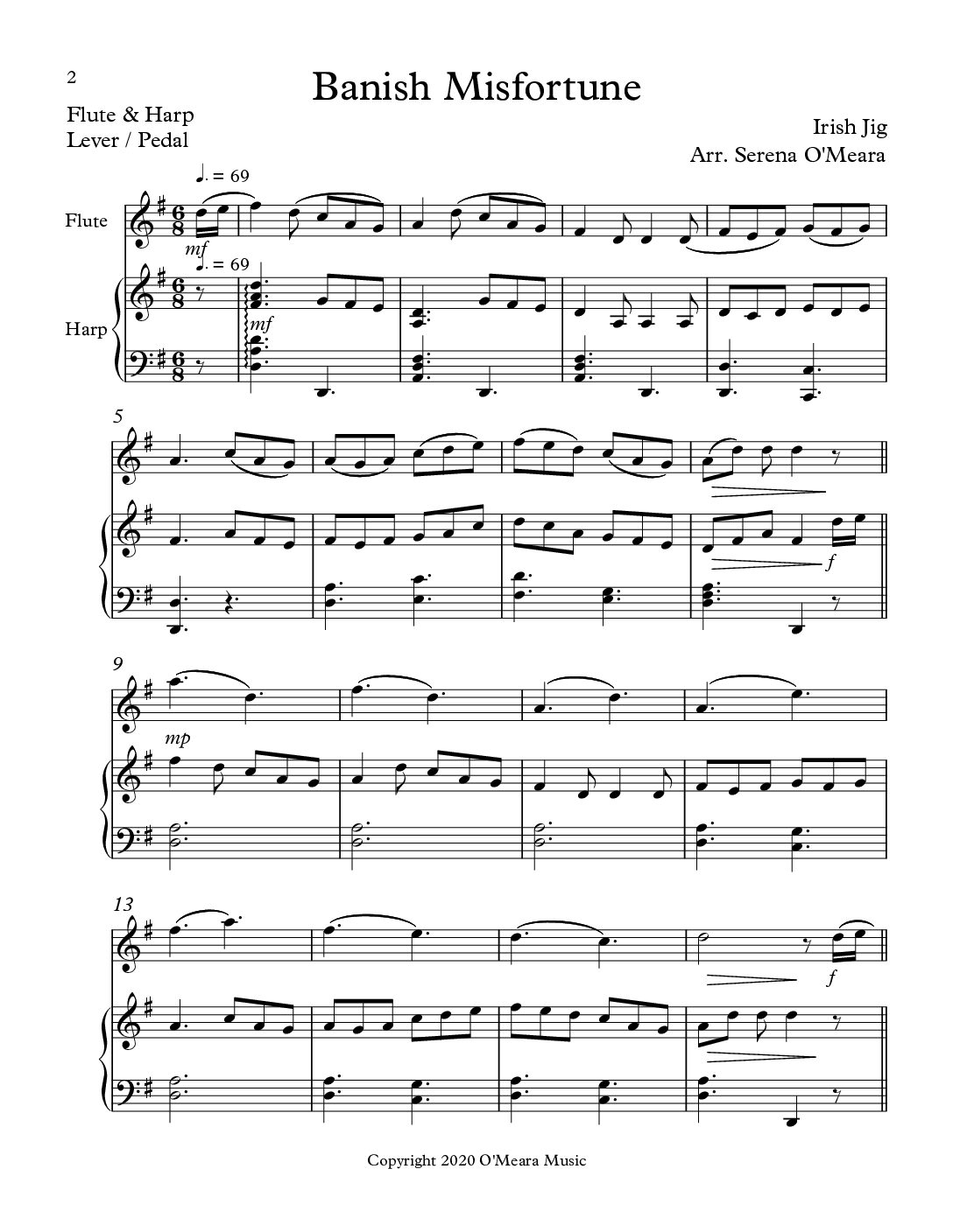 This lively Jig is ideal for weddings, receptions, dinners and parties. The three sections, rather than the usual two of most jigs, allows for a Rondo form (AABACABC). Each section cadences in the same manner. There are numerous English and Celtic names for this melody. Score & Parts, 10 pages.