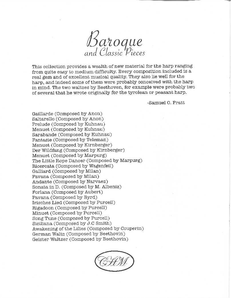 This is a gem of a collection. The compositions range from beginner to advanced pedal harp.