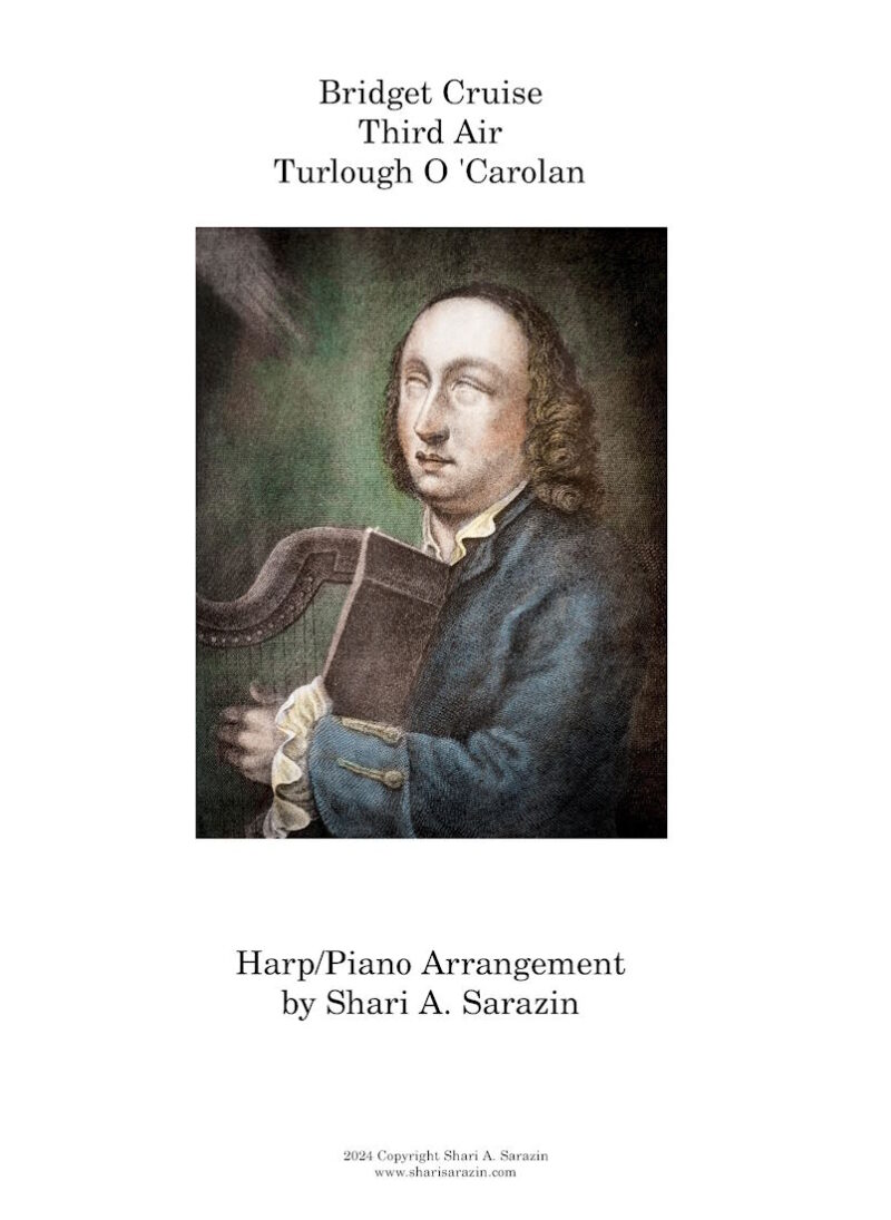 Shari Sarazin’s arrangement of “Bridget Cruise, Third Air” by Turlough O’Carolan for harp is a beautiful rendition of this classic Irish tune. This arrangement captures the romantic and lyrical essence of O’Carolan’s composition, dedicated to his first love, Bridget Cruise. The harp’s gentle and melodic tones bring out the heartfelt emotions of the piece, making it a perfect choice for both solo performances and intimate gatherings.