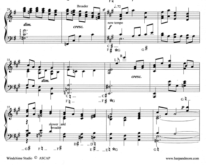 This simply gorgeous arrangement of a well-known hymn is stunning. The arrangement is actually by Larry Schockley and it was transcribed and notated by Linda Barton Paul. It is lush and beautiful and a joy to play.