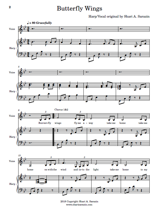 A lovely poem set to music, both by Shari Sarazin. Exerpt: Butterfly you and I born of love beyond the night, Breath of life and purity, butterfly come fly with me.