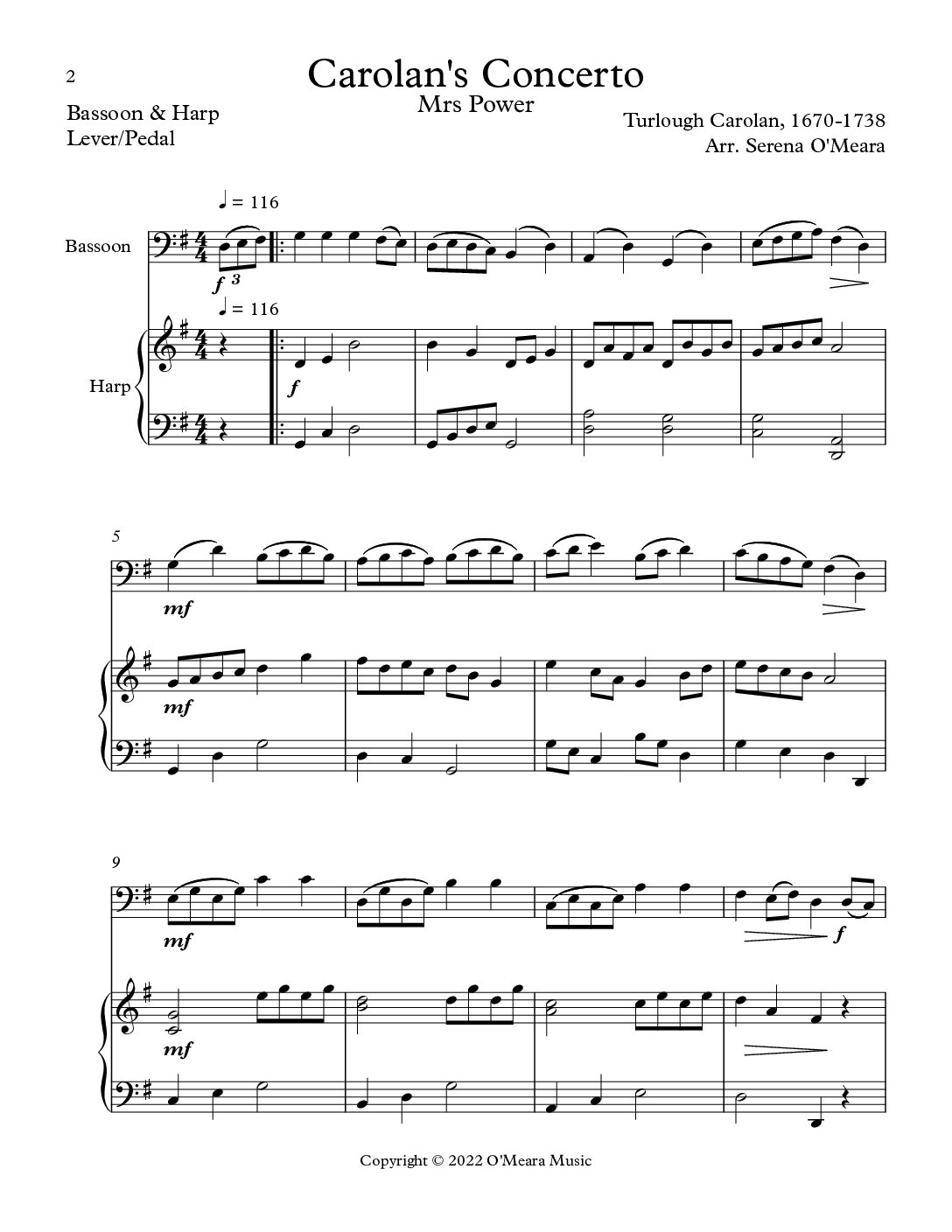 According to legend, Turlough Carolan was visiting the Power family in Dublin when he was challenged to compose a piece in the popular Italian style of the day. The result was this piece in the style of Corelli, dedicated to Mrs. Power. This piece is performed at weddings – either as Processional or Recessional!