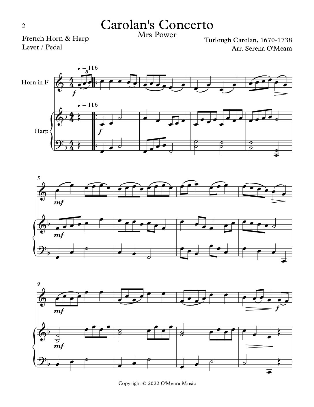 Carolan’s Concerto, Duet for Horn in F & Harp