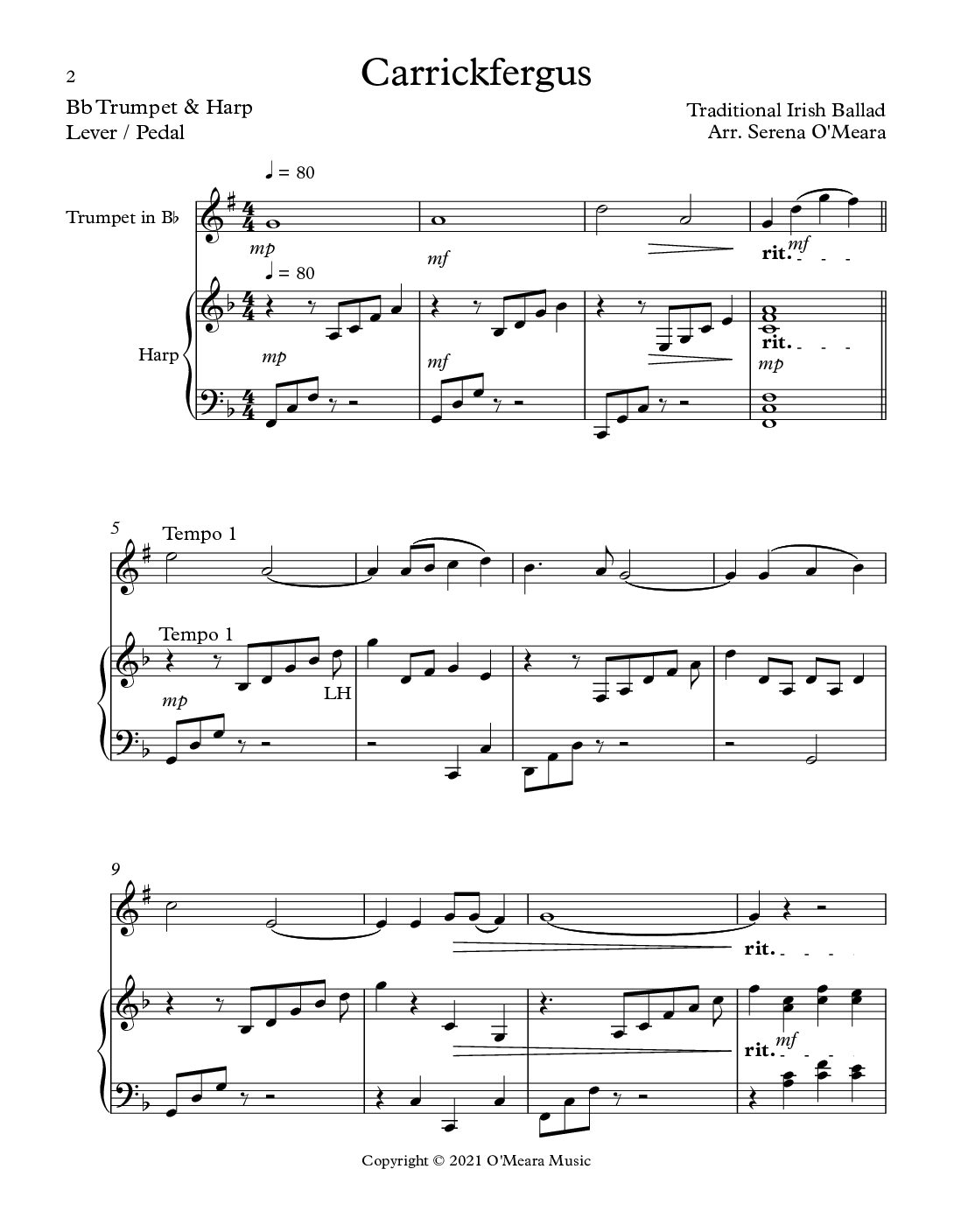 Carrickfergus Duet for Bb Trumpet & Harp