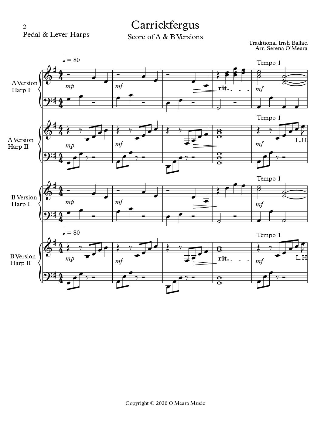 The Multi-level pieces were initially arranged in an A Version. When that was completed, it was then simplified to form the B Version. The B Version has thinner lines and allows more time for placing the fingers. The purpose is to permit harpists of various playing levels to enjoy performing together.