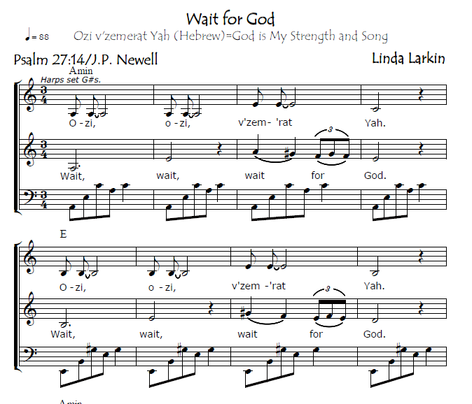 This beautiful collection of meditative chants was composed by Santa Fe musician Linda Larkin. It contains 3 chants with texts from the Psalms which have descants in Hebrew, 3 chants from Matthew with Aramaic descants and 3 chants from the Koran with Arabic descants. Thus Jewish, Christian and Muslim traditions are included. The chants are recorded on the CD Chanting for Peace and correlate with Praying with the Earth: A Prayerbook for Peace by author John Philip Newell. Examples of texts used are “Come to me, you who are weary,