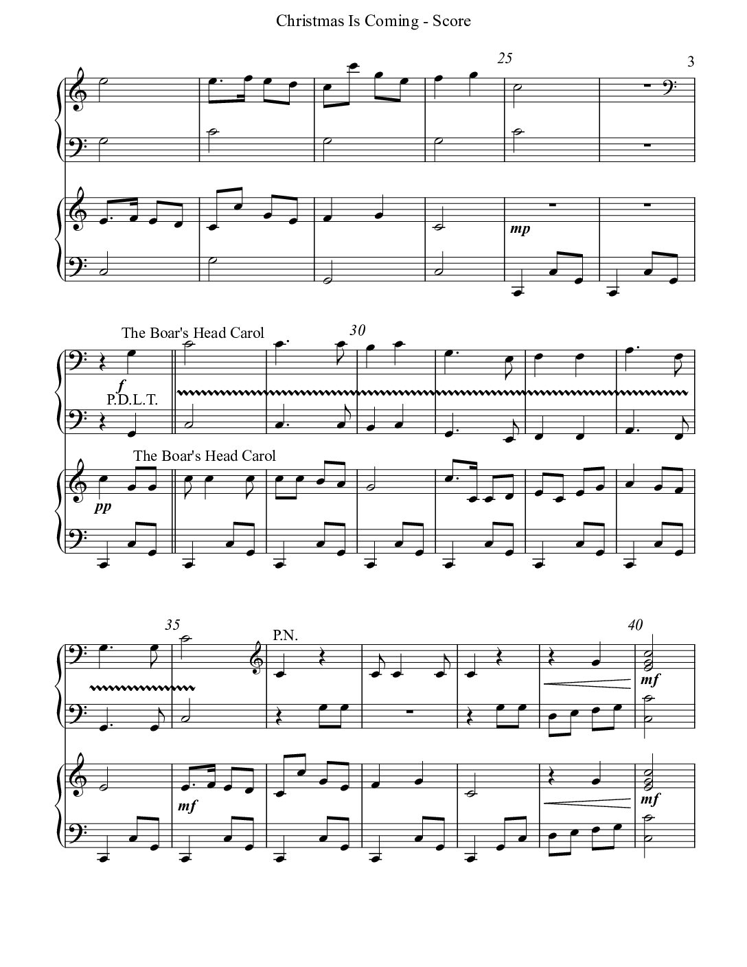 Christmas is Coming, a nursery rhyme ascribed to Edith Nesbitt, permeates this fun medley which includes Christmas is Coming, The Boar’s Head Carol, Love Came Down at Christmas, and God Rest Ye Merry, Gentlemen.