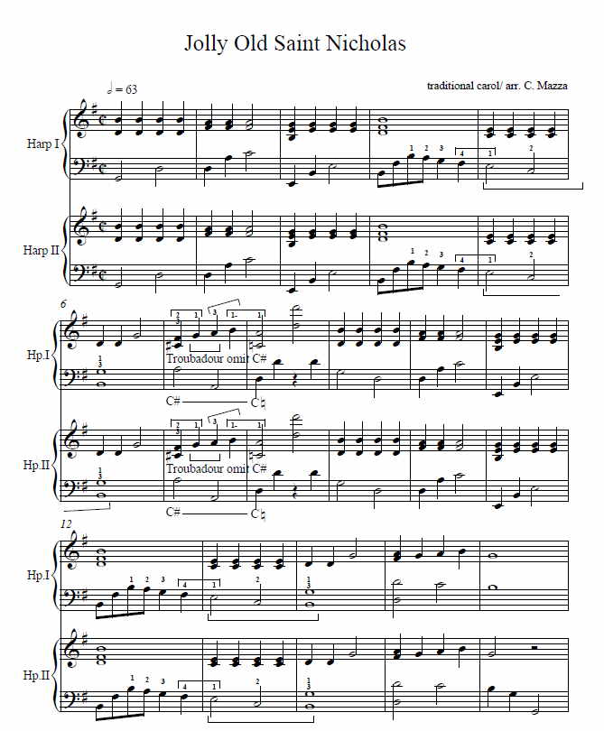 “Jolly Old St. Nicholas” (2 harps)