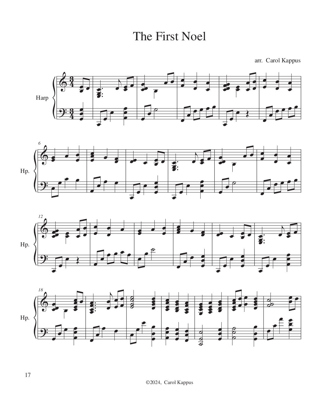 Christmas Tunes for Celtic Harp arranged by Carol Kappus. 33 pages