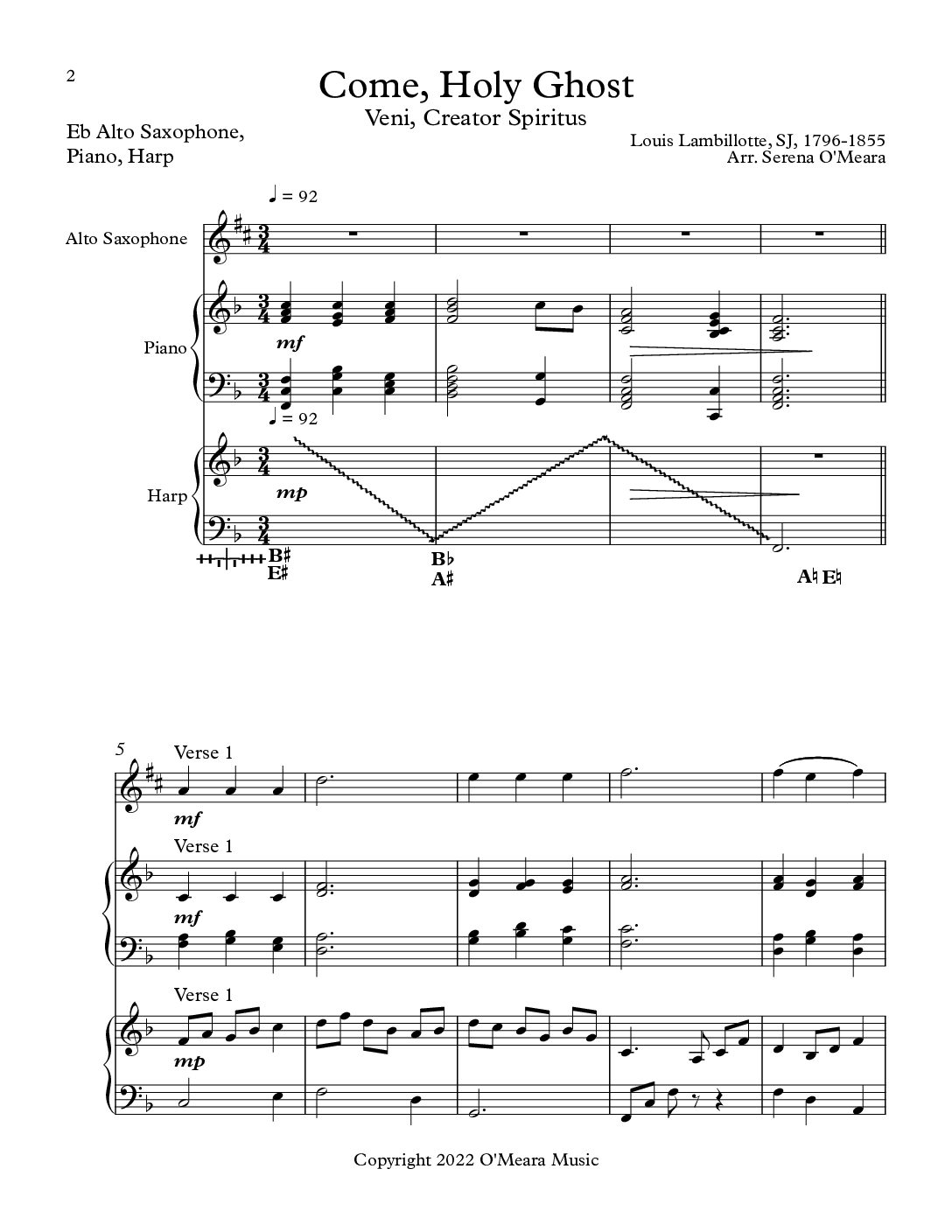 Come, Holy Ghost, Trio for Eb Alto Saxophone, Harp, Piano
