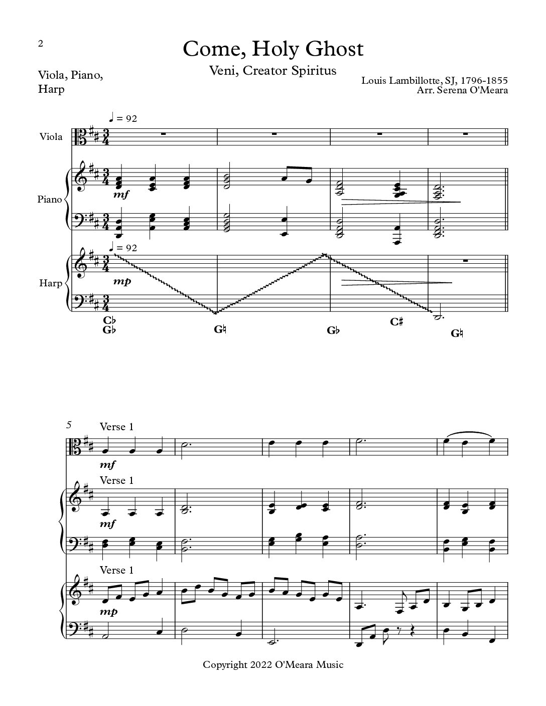 Come, Holy Ghost, Trio for Viola, Harp, Piano