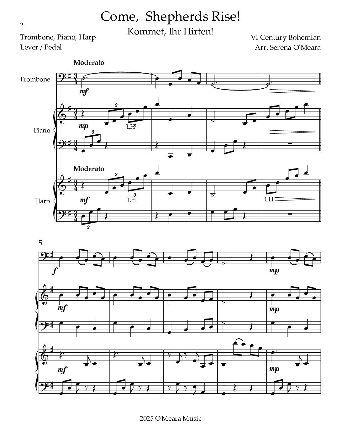 Come, Shepherds Rise! Trio for Trombone, Piano & Harp