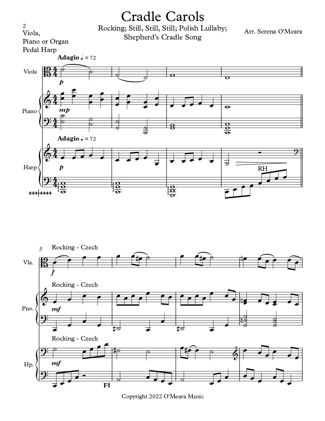 Cradle Carols, Trio for Viola, Pedal Harp and Piano