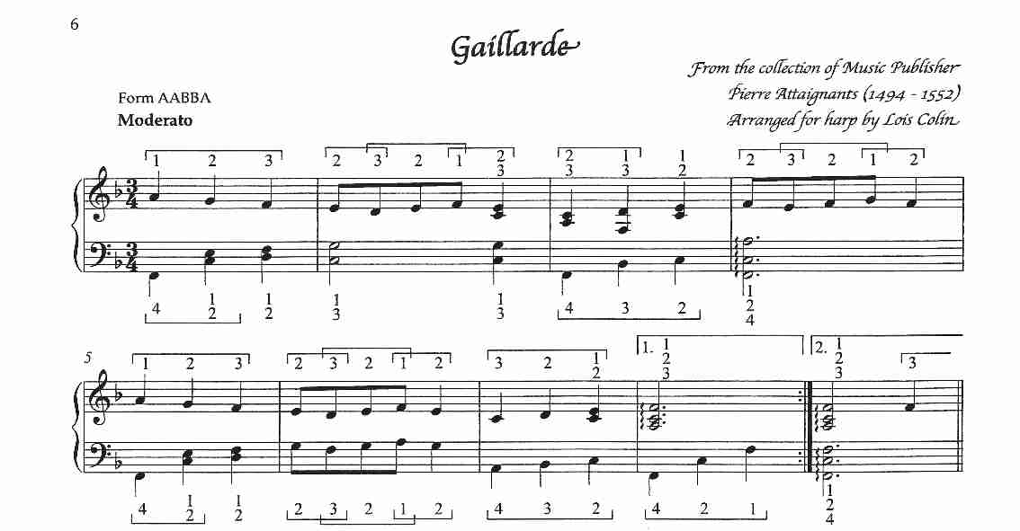 arranged by Lois Colin for intermediate to advanced pedal or Lever harp