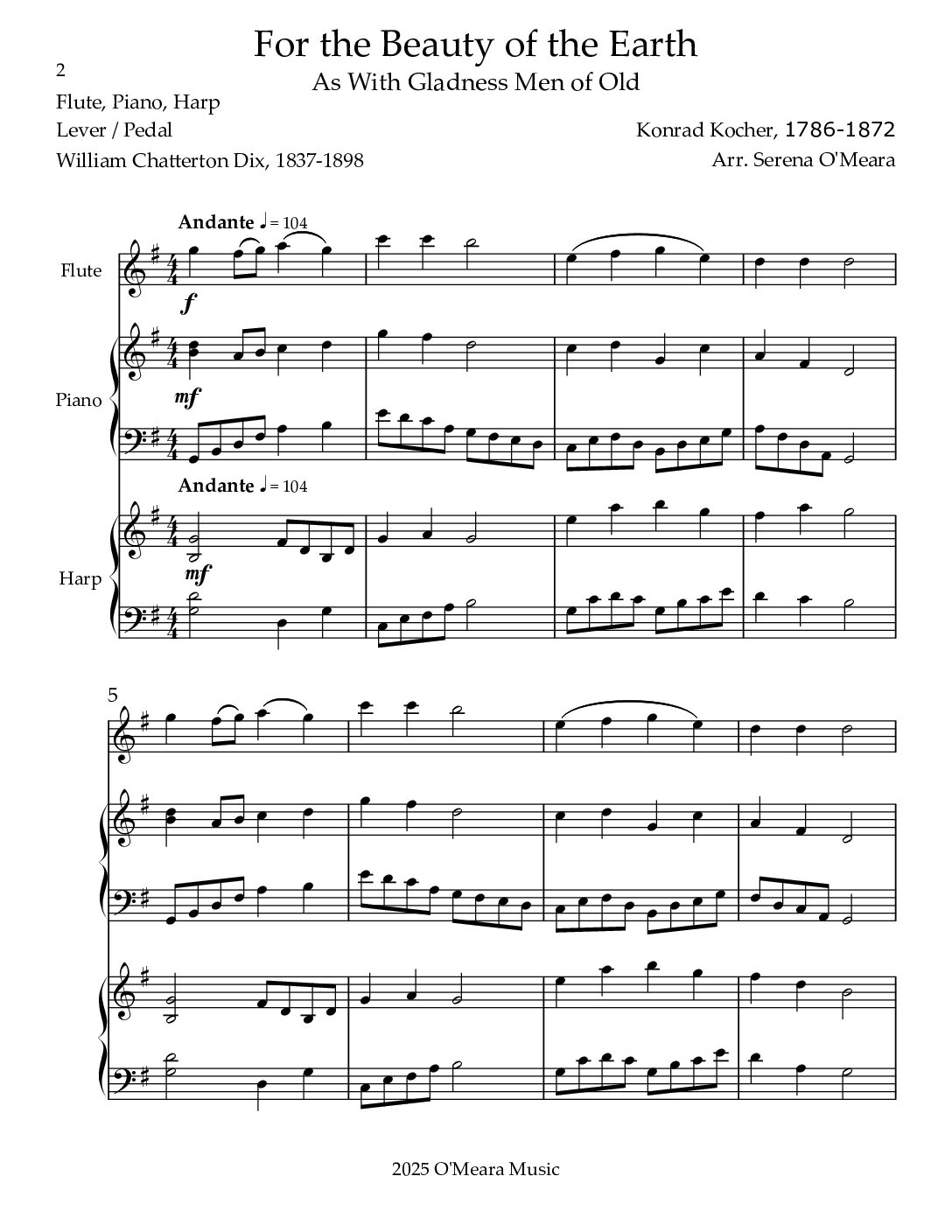 For the Beauty of the Earth, Trio for Flute, Piano & Harp