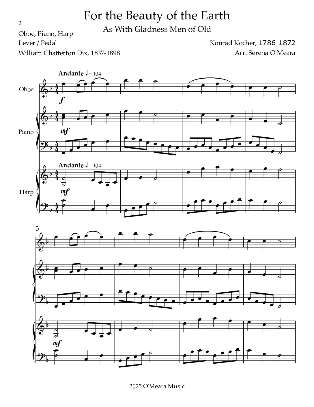 For the Beauty of the Earth, Trio for Oboe, Piano & Harp