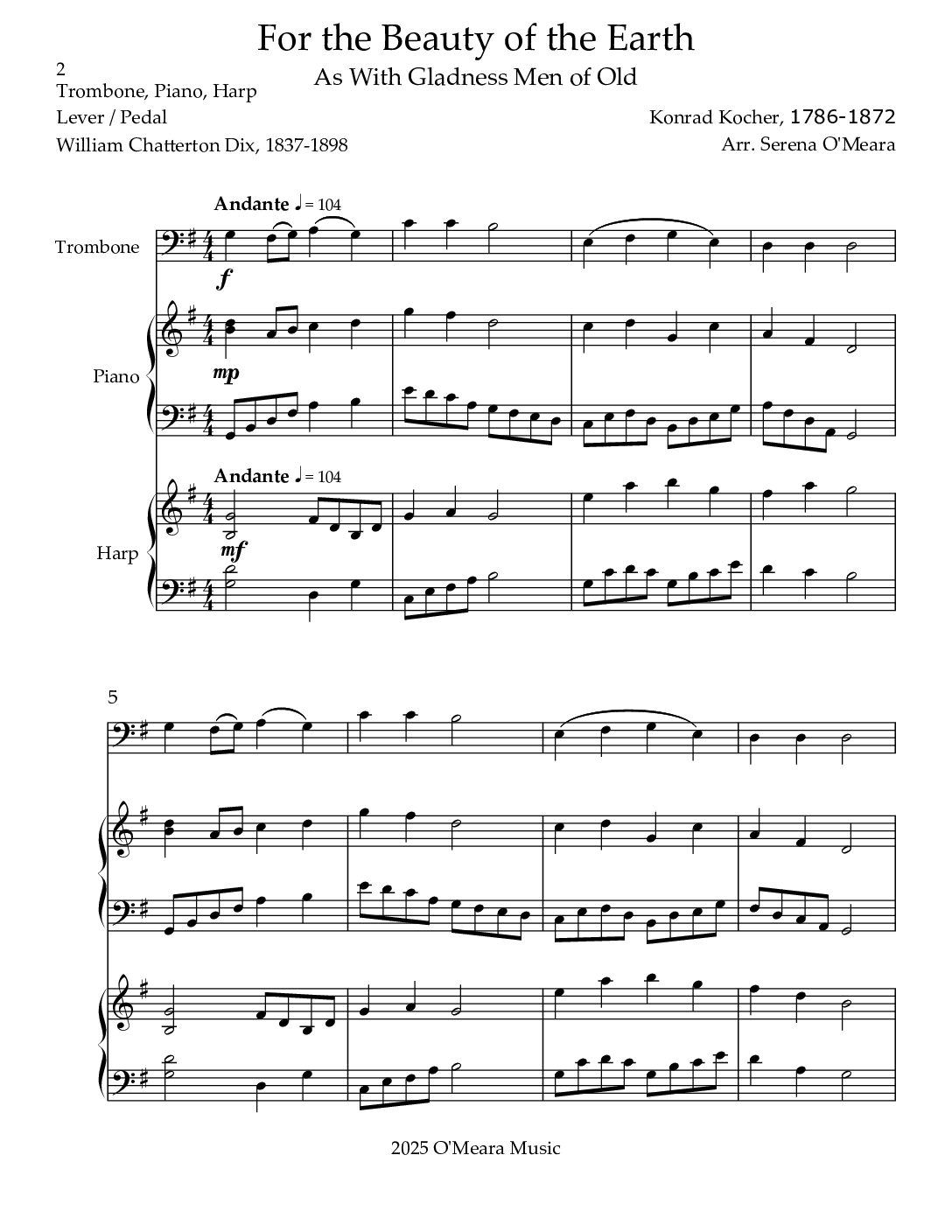 For the Beauty of the Earth, Trio for Trombone, Piano & Harp