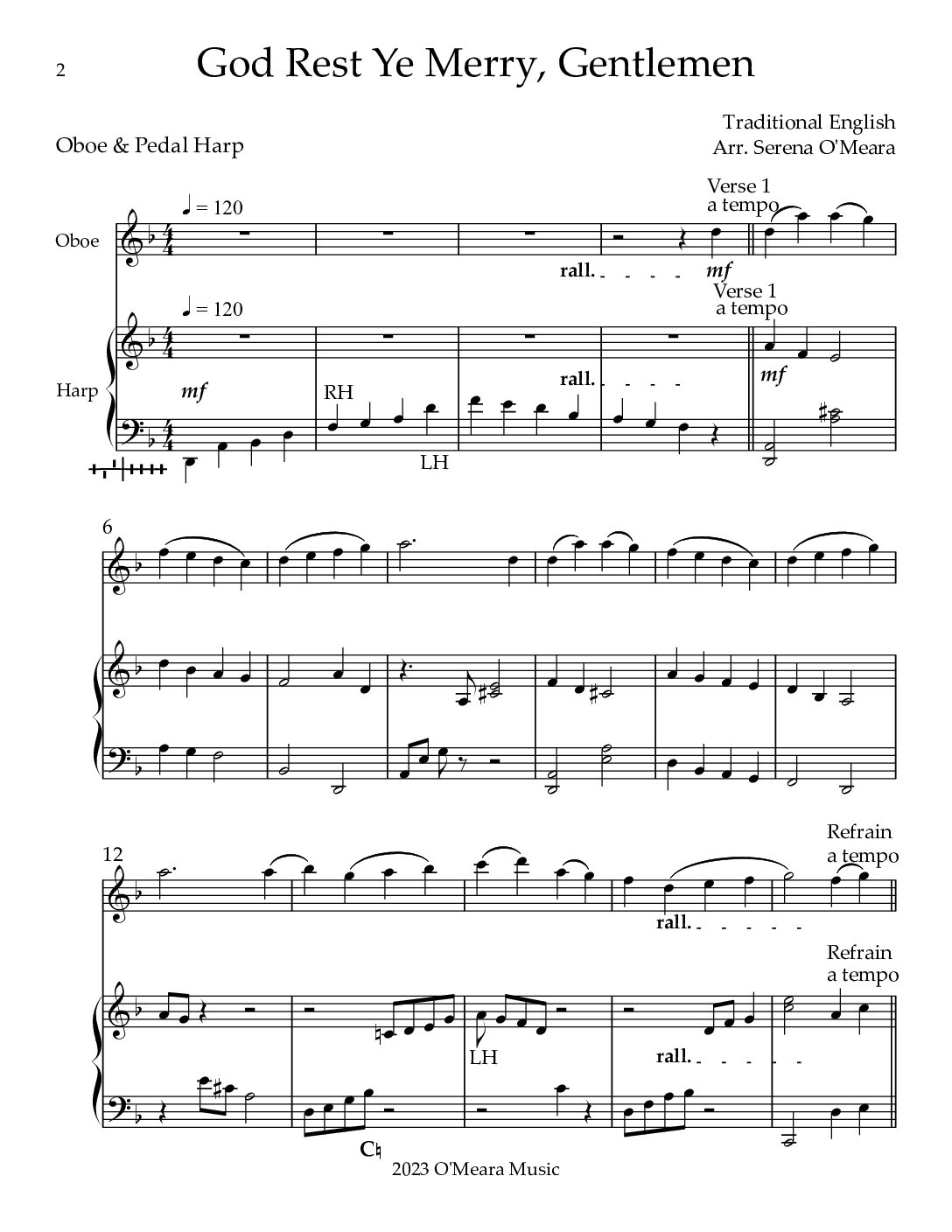 God Rest Ye Merry, Gentlemen, Duet for Oboe & Pedal Harp