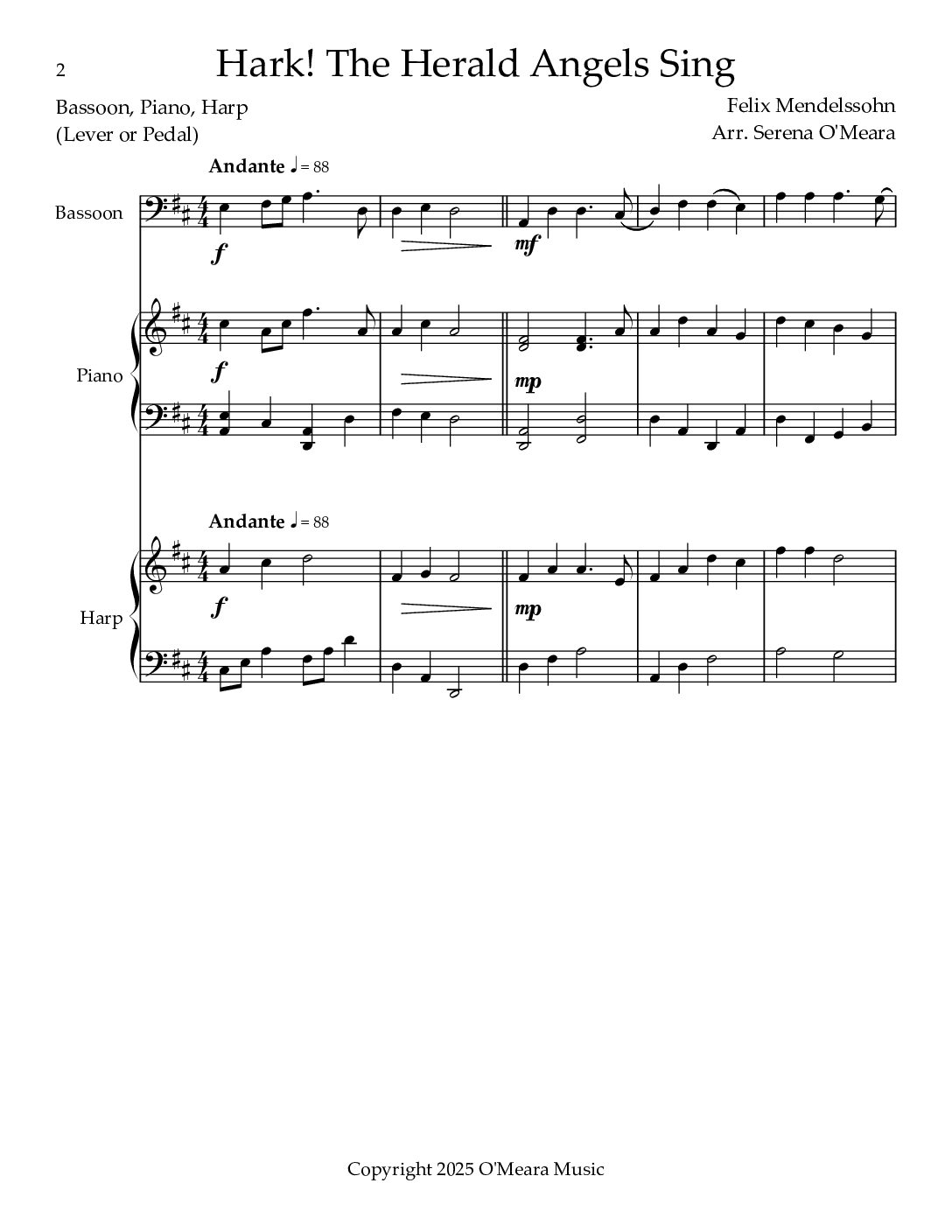 This joyful Christmas Carol features 3 verses separated by an interlude. Each instruments takes it’s turn with the melody. Playable on either lever or pedal harps Score & Parts, 19 pages, $20.00.