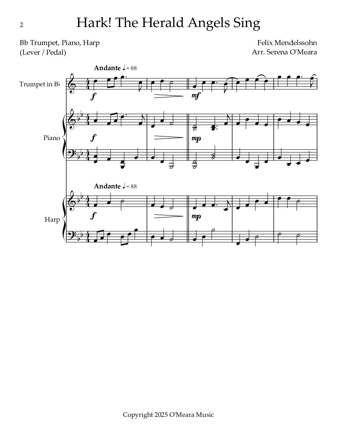 Hark! The Herald Angels Sing, Trio for Bb Trumpet, Piano & Harp