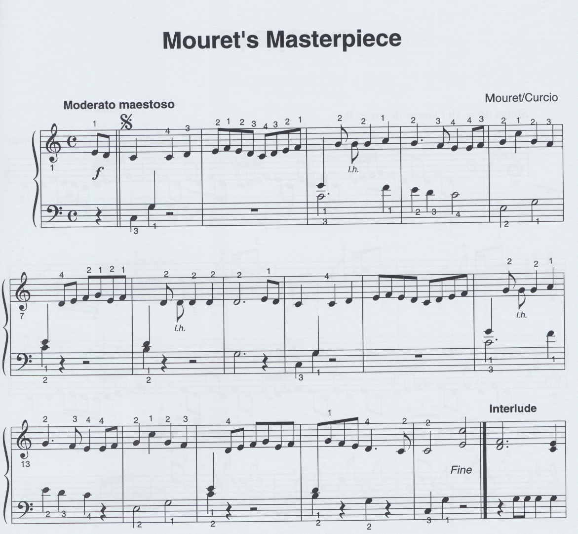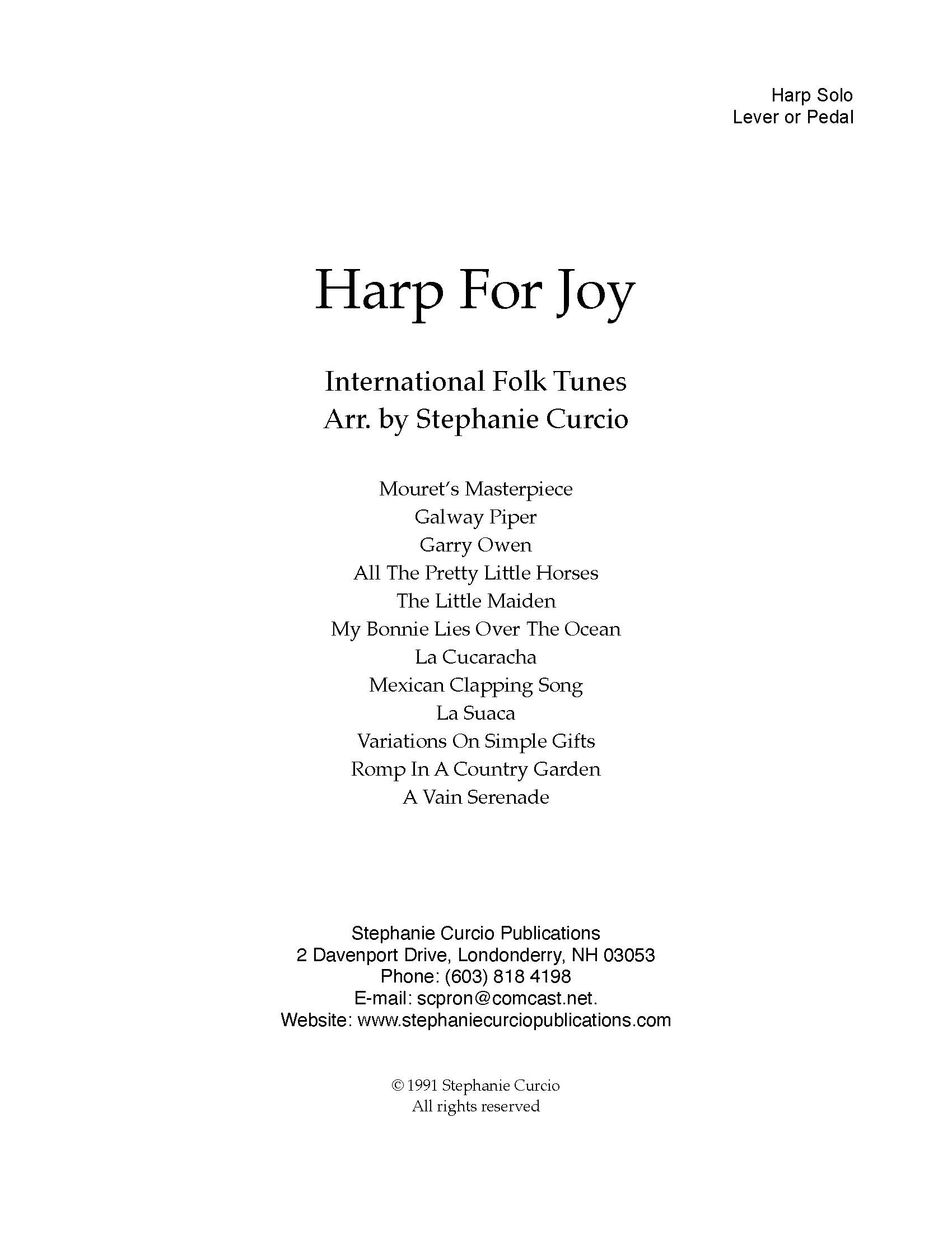 Mouret’s Masterpiece, Galway Piper, Garry Owen, The Little Maiden, All the Pretty Little Horses, My Bonnie Lies Over the Ocean, Mexican Clapping Song, La Suaca, La Cucaracha, Romp in a Country Garden, Variations on Simple Gifts, A Vain Serenade
