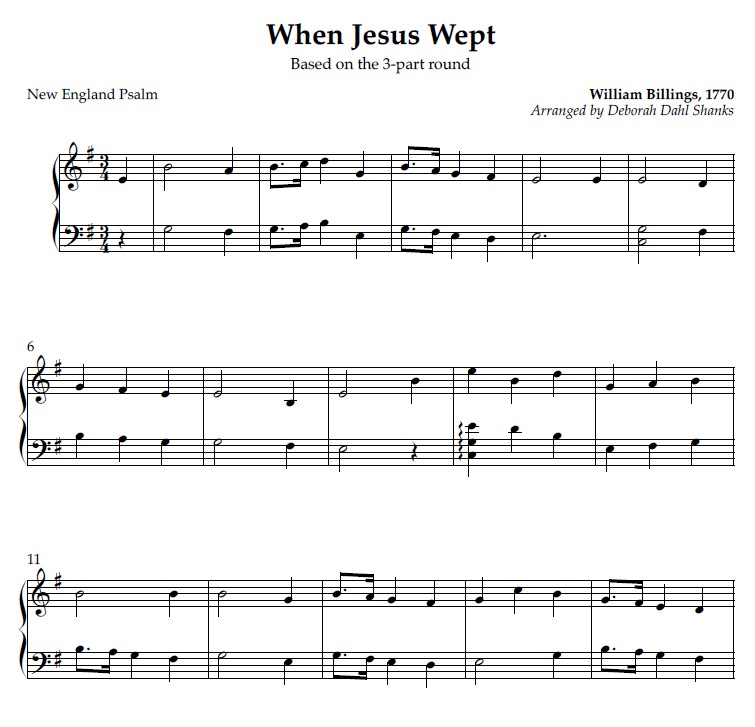 - “When Jesus Wept” is also contained in the book Colonial Tunes
