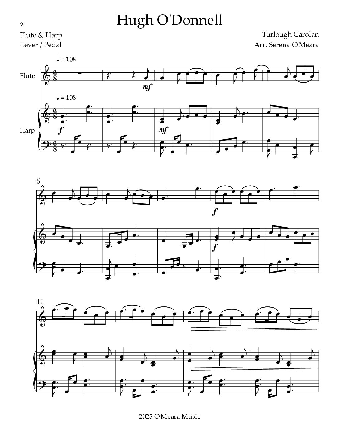 This upbeat Irish Air is a crowd pleaser at any party or Country Dance. Carolan composed it for the son of his patron, Colonel Manus O’Donnell of County Mayo. You will receive the Score, plus separate Parts. The Harp part is playable on either Lever or Pedal Harps. Score and Parts, 17 pages.