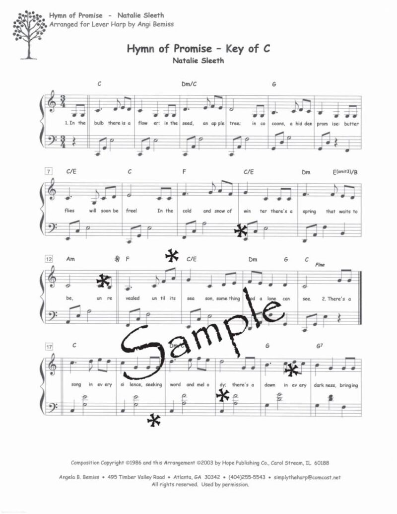 Angi’s arrangements are intermediate or lower intermediate, and they are sight-readable by advanced harpists and some are sight-readable by intermediate harpists. Despite their simplicity they sound full. The melody is clear, and the harmonies are accurate and supportive of the beautiful melodies Angi chooses to arrange.