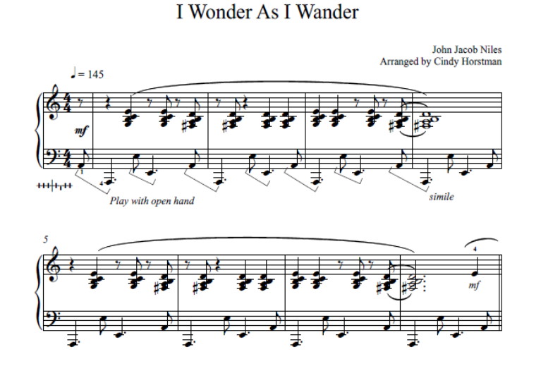 Jazzy, upbeat arrangement similar to Cindy’s harp ensemble arrangement.