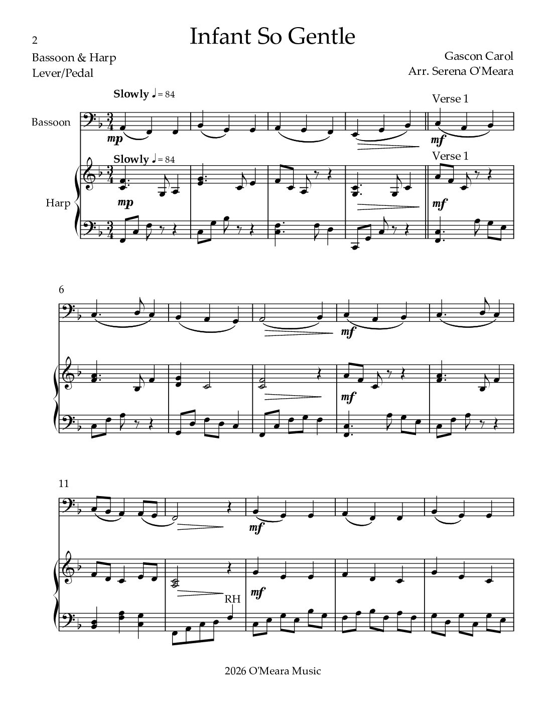 Infant So Gentle, Duet for Bassoon & Harp