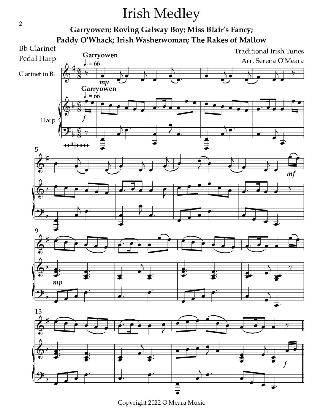 Irish Medley, Duet for Bb Clarinet & Pedal Harp