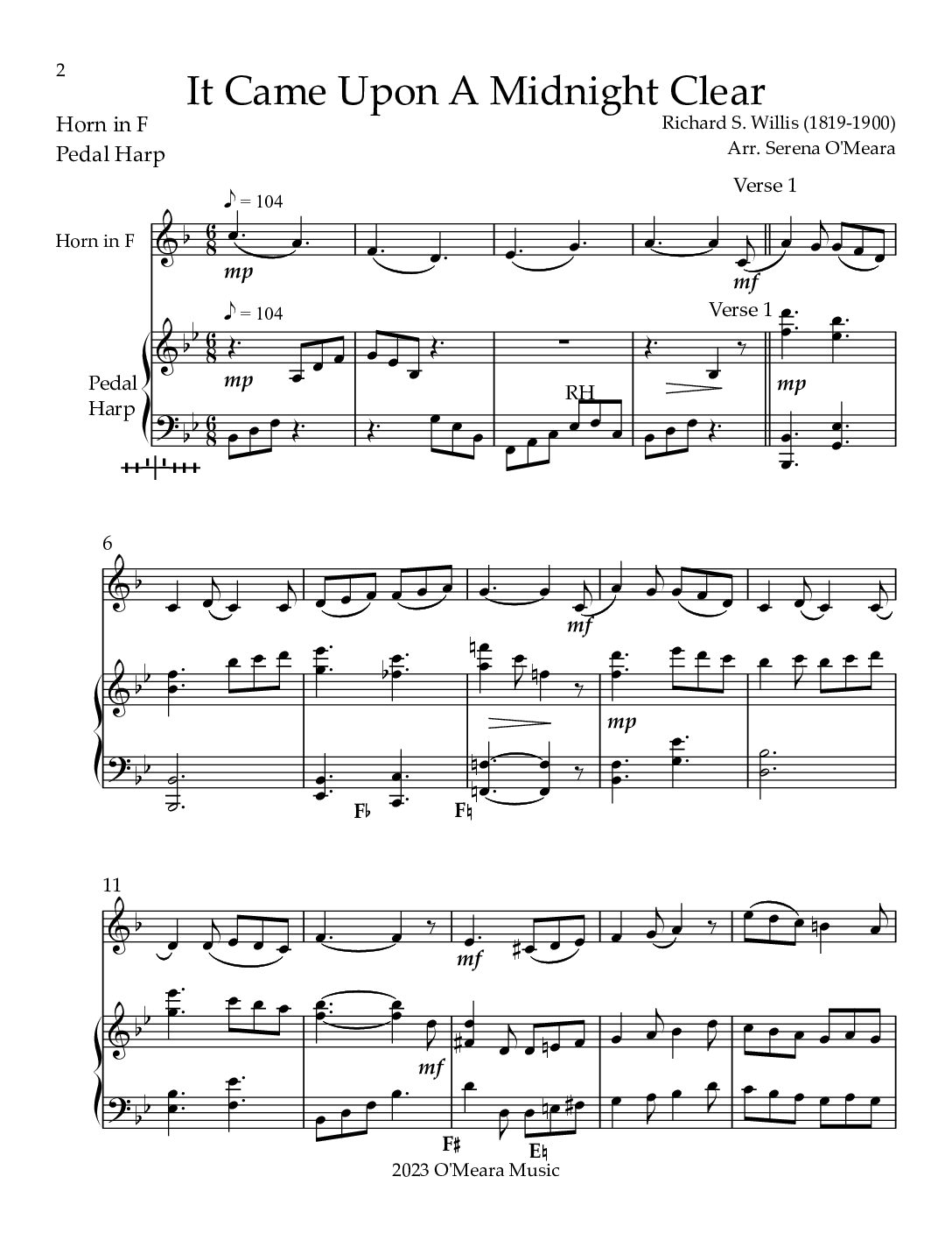 It Came Upon A Midnight Clear, Horn in F & Pedal Harp