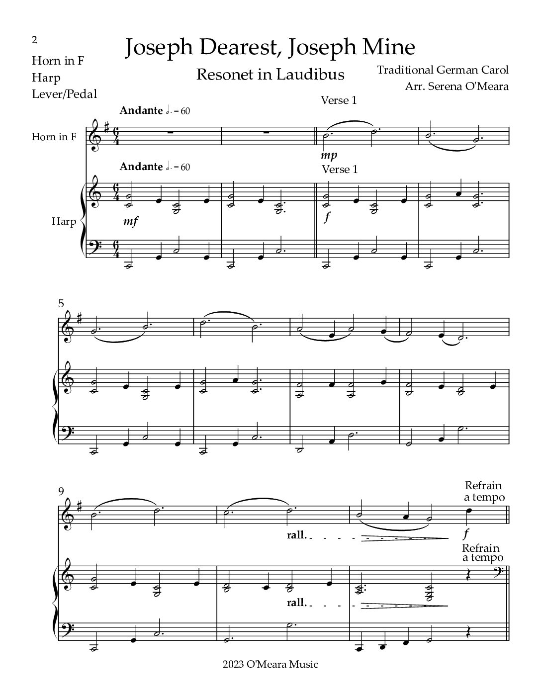 Joseph Dearest, Joseph Mine, Duet for Horn in F & Harp