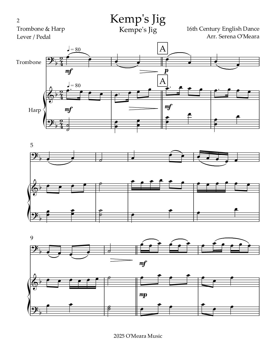 Kemp’s Jig, Duet for Trombone & Harp