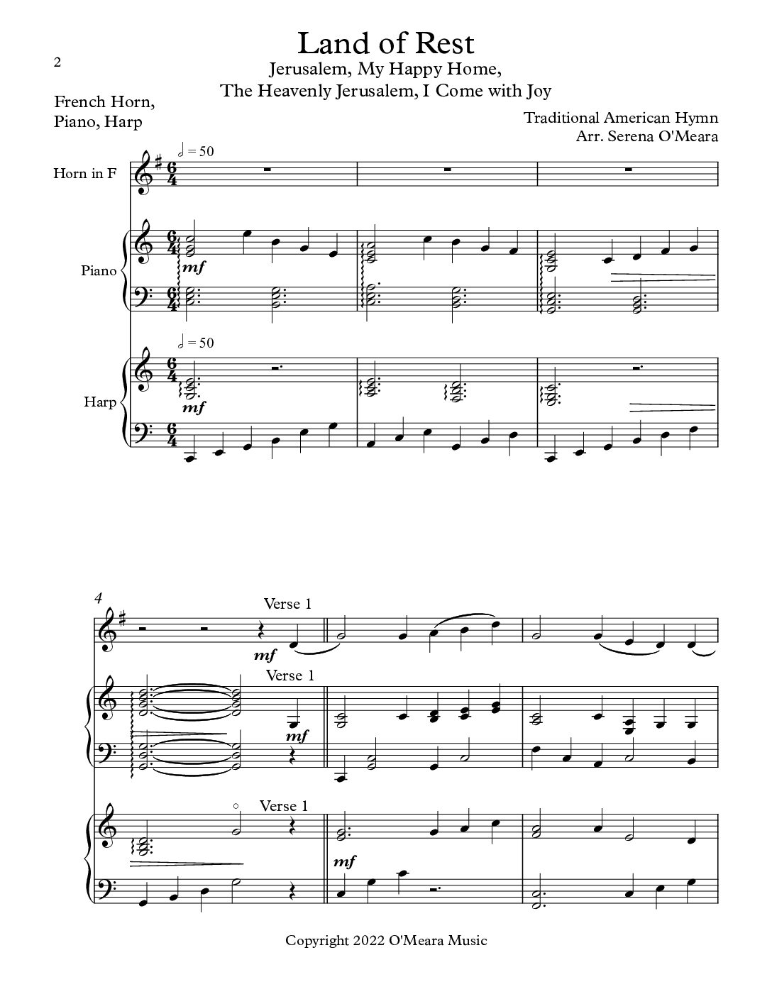 Land of Rest, Trio for Horn in F, Harp, Piano