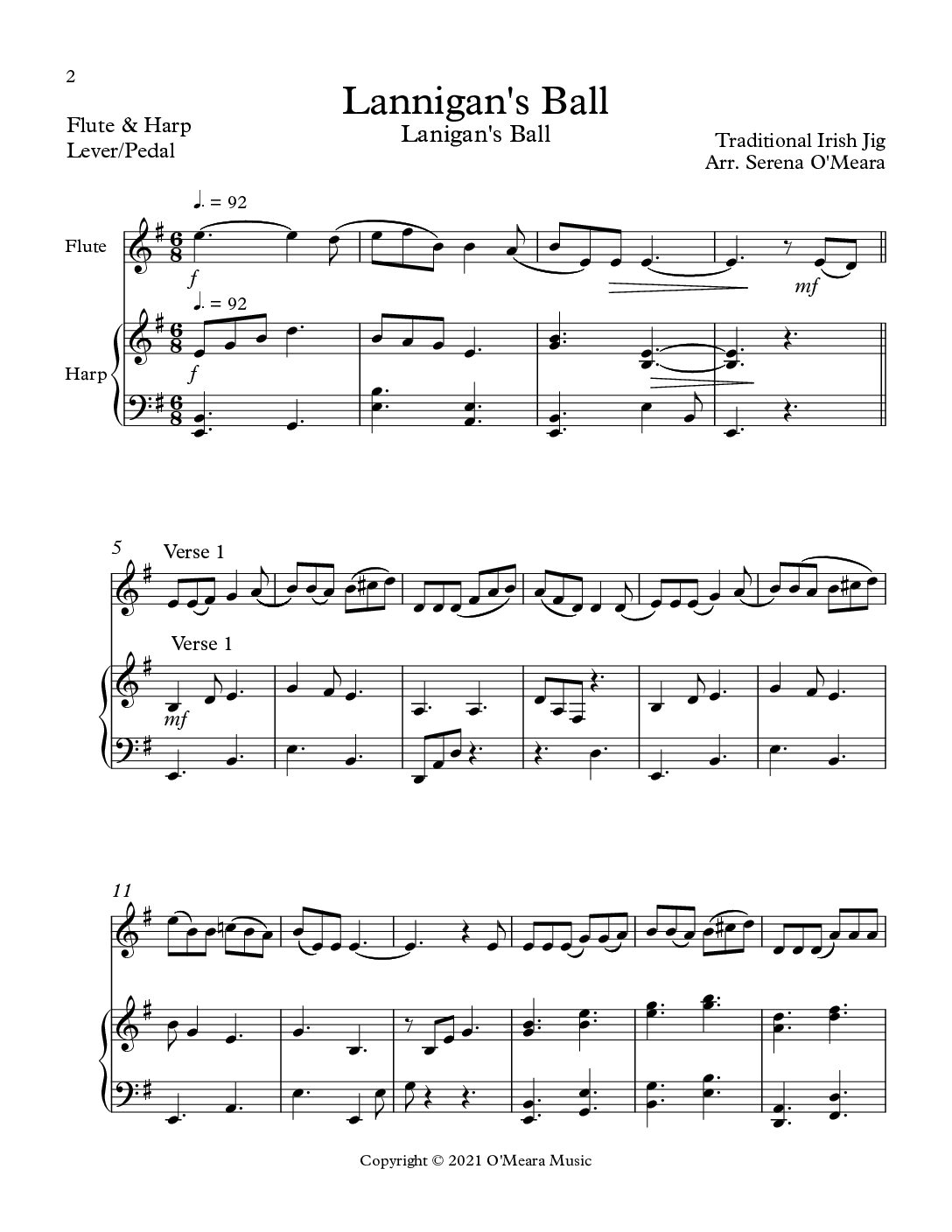 Lannigan’s Ball, Duet for Flute & Harp