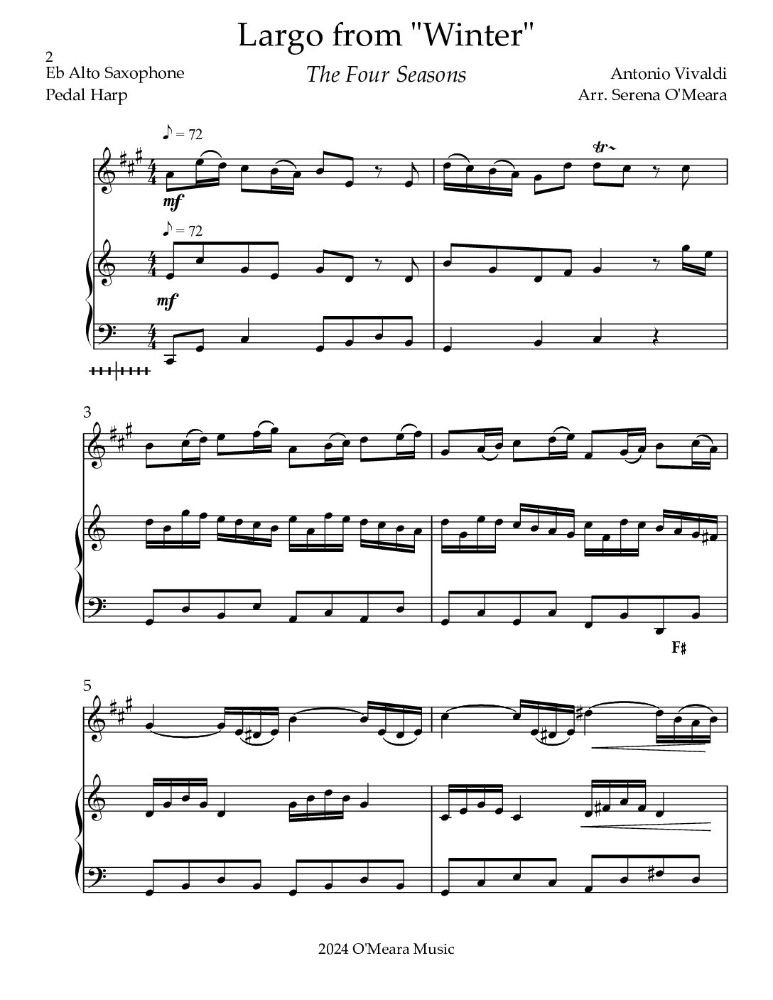 Largo from “Winter”, Duet for Eb Alto Saxophone & Pedal Harp