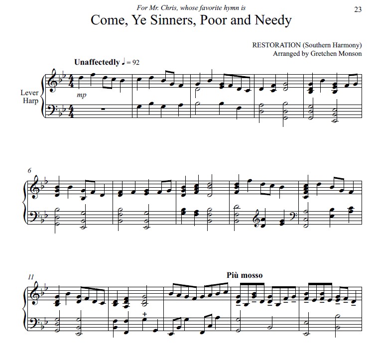 Please note that these arrangements are adaptations of those in pedal harp books Harp Offertories and Harp Offertories 2.