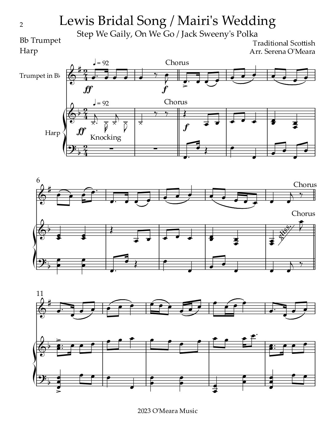 Lewis Bridal Song/Mairi’s Wedding, Duet for Bb Trumpet & Harp