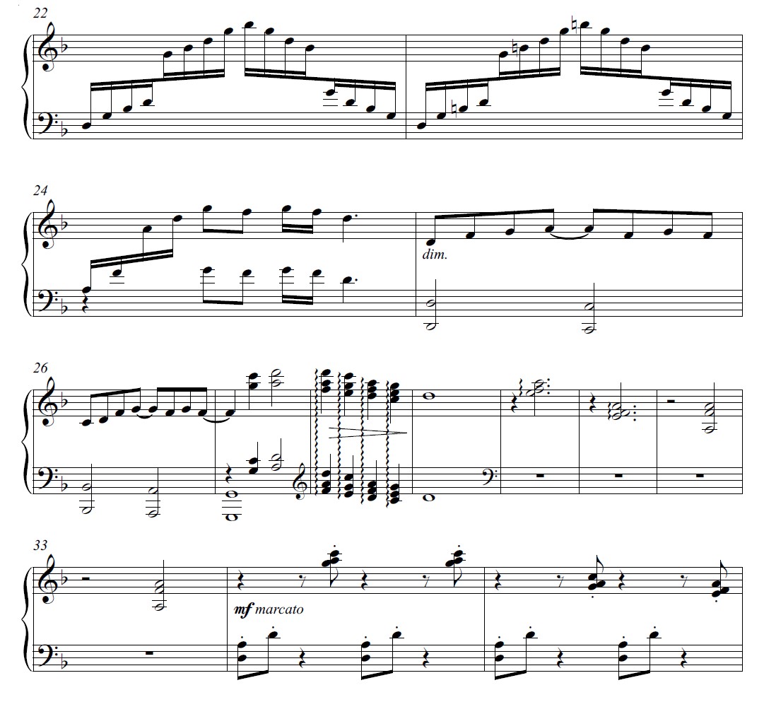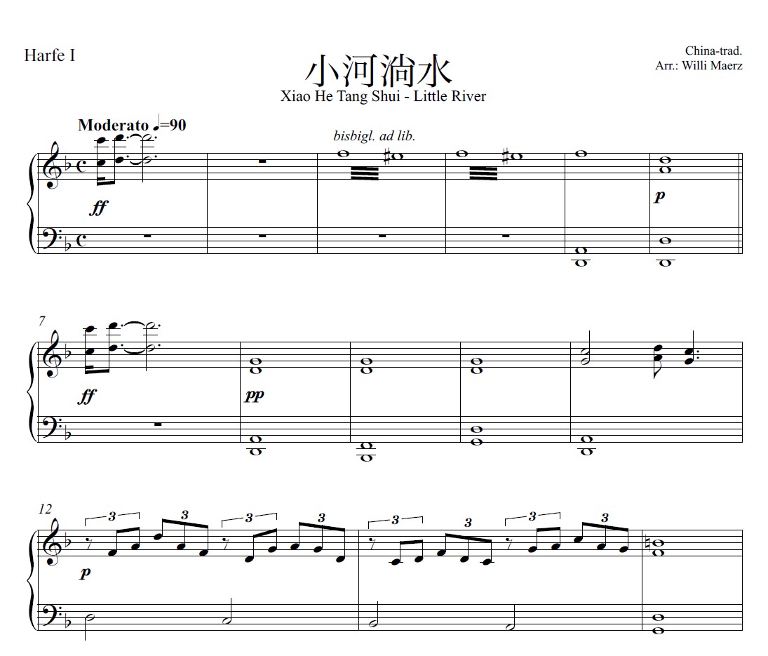 This is the intermediate version of Maerz’s Little River. It features glisses, full-hand (four-finger) arpeggios (rarely in sync with another part), bisbigliando, harmonics, and parallel intervals.