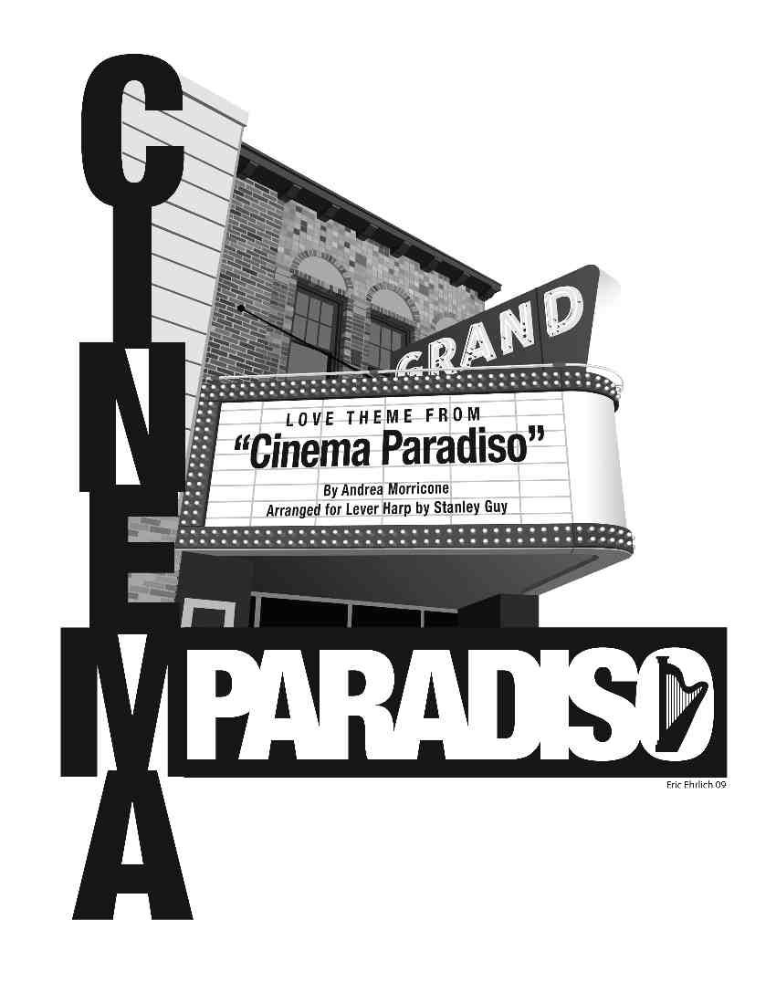 Lever: This beautiful, romantic and mysterious sounding piece may be recognizable to you. It is from a 1989 movie, told in flashback, about a man’s childhood friendship with an old man who was the projectionist at the local theater in Italy. There are some wonderful embellished jazz chords in this piece. Also included is a simpler 1-page version on the back page, which eliminates a couple of tricky lever changes. This is a notable addition to our lever harp repertoire.