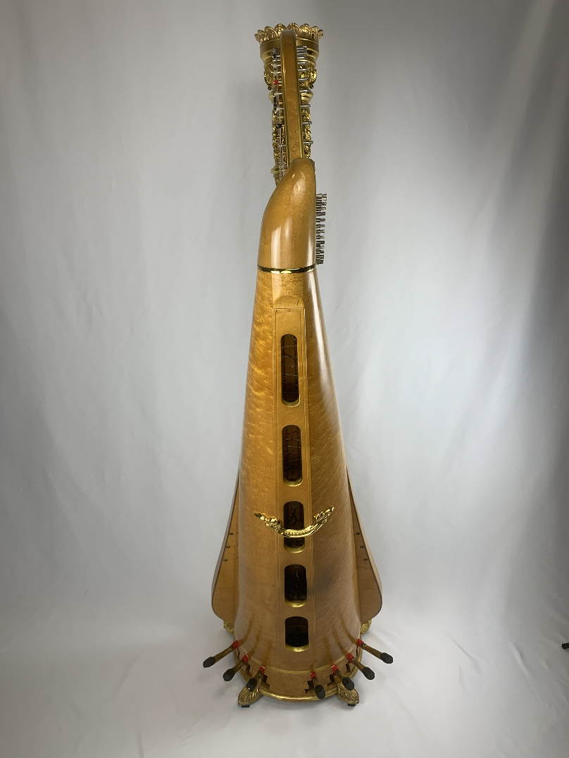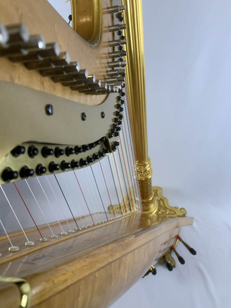Lyon & Healy Style 23 Gold (1976) w/ dustcover & tuning key SN: 7674 The single owner is a beloved local harpist. The neck and action have been rebuilt. It is in excellent mechanical condition and has some minor cosmetic wear. This beautiful harp has been maintained and regulated regularly by Peter Wiley. $45,000 + tax if picked up in the shop.