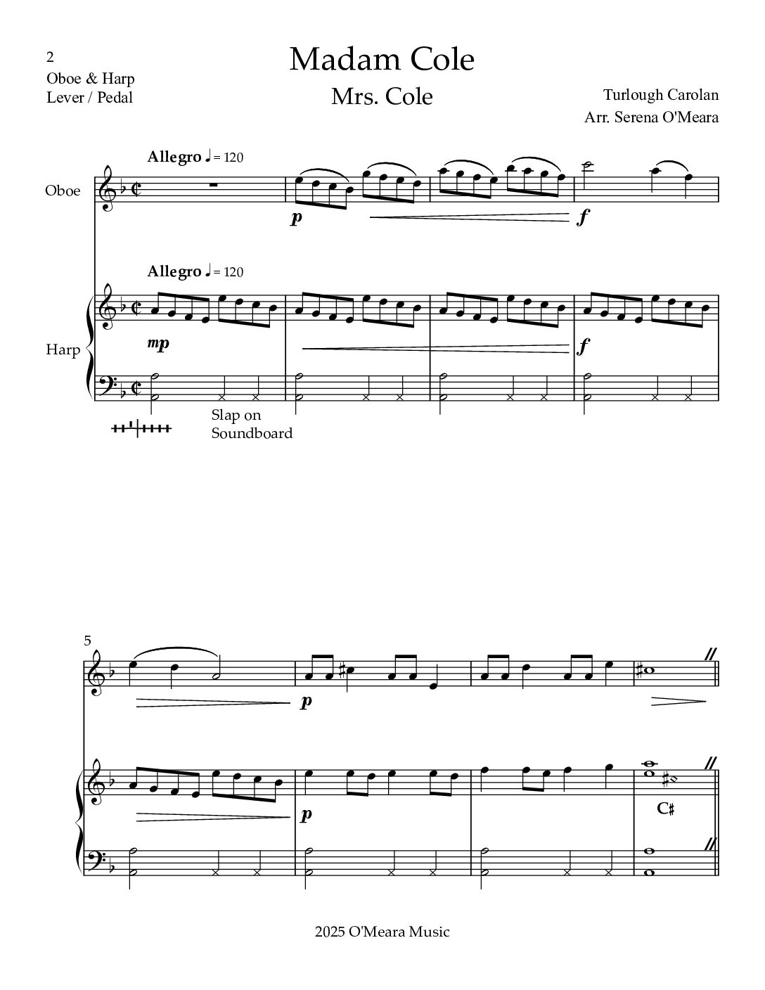 Madam Cole, Duet for Oboe & Harp