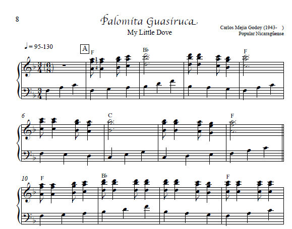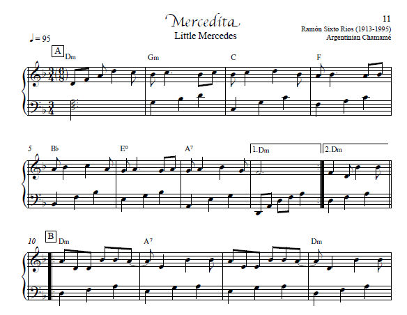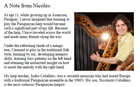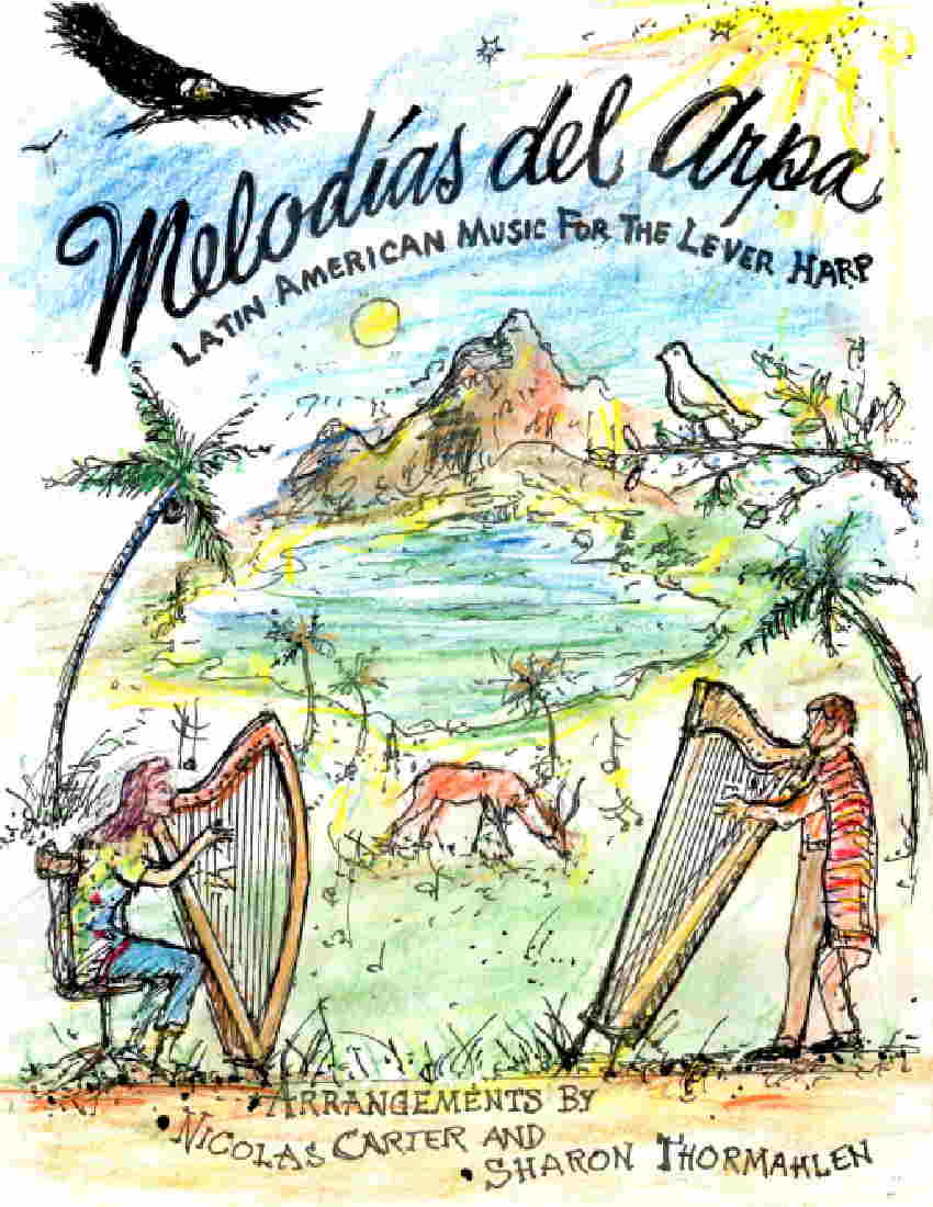 This is a collaboration by Nicolas Carter and Sharon Thormahlen. These tunes, arranged by Mr. Carter, have been further arranged and simplified by Sharon for the intermediate beginner harp player. Included is some history and description of each tune and its composer. Also included are some things to know about Latin American Music, some technical notes on the music, and suggestions for practicing. Chords are notated above the treble line, keys of F, C, G, syncopation, some accidentals and glisses.