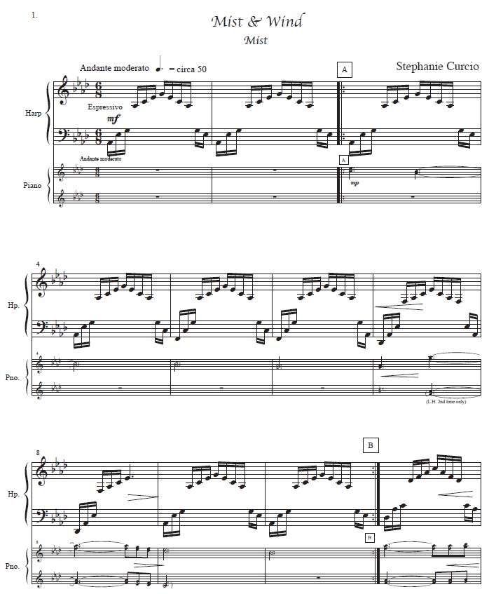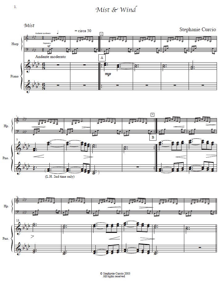 This piece is also available for harp duo/trio as two separate pieces: Mist and Wind.