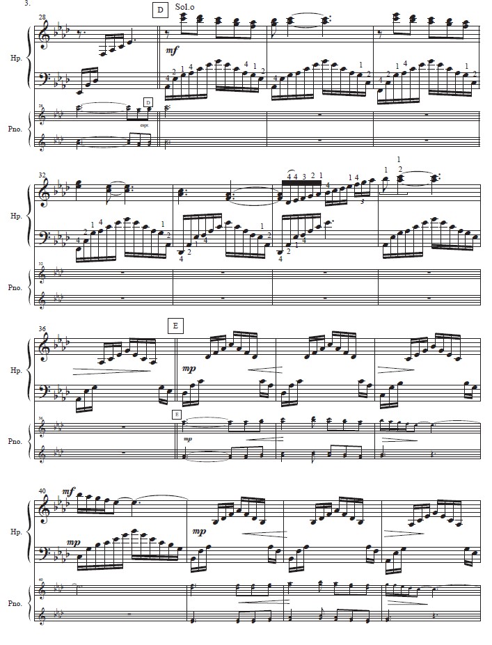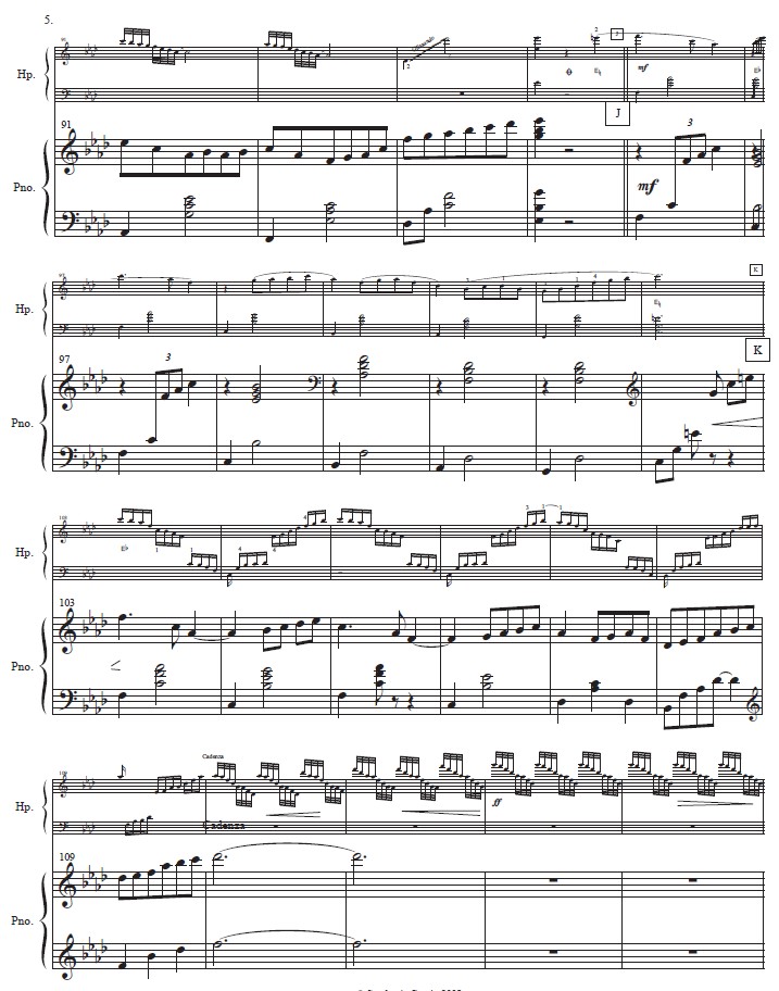 For the digital version: Includes two scores, one for harp with the piano part shrunk to small staff size (9 pages) and the other for piano with the harp part shrunk to small staff size (6 pages).